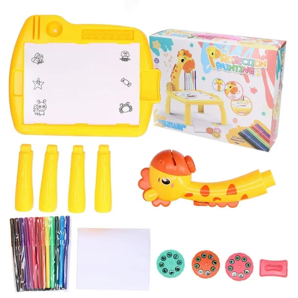 Proyector ajustable con forma de jirafa, para proyectar imágenes que el niño puede trazar fácilmente.